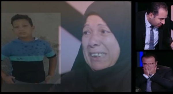 وبكت الأم بشدة أثناء حديثها عن الواقعة، وهي تسرد تفاصيل الجريمة وتلوم نفسها على أنها تبنت القاتل في يوم من الأيام، وكانت تعطف عليه وتطعمه، حتى أنكر كل هذا وقتل ابنها، حسب روايتها، الأمر الذي دفع المذيع للتأثر والتفاعل معها، وقام من على كرسيه وطلب منها الهدوء والتوقف عن البكاء، وقام بتقبيل رأسها، ثم دخل في نوبة بكاء معها ولم يتمالك نفسه.