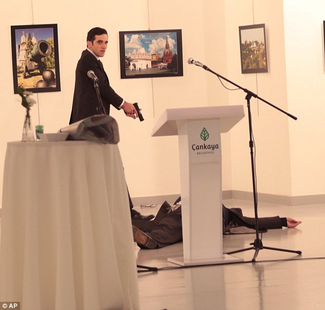وعن الرصاصات التي استقرت في جسد السفير أشارت صحيفة 'هارييت' نقلاً عن مصادر أمنية أن 9 طلقات من أصل الـ11 التي أطلقها القاتل، أصابت السفير الروسي أثناء إلقائه كلمته في افتتاح معرض الصور الفوتوغرافية.